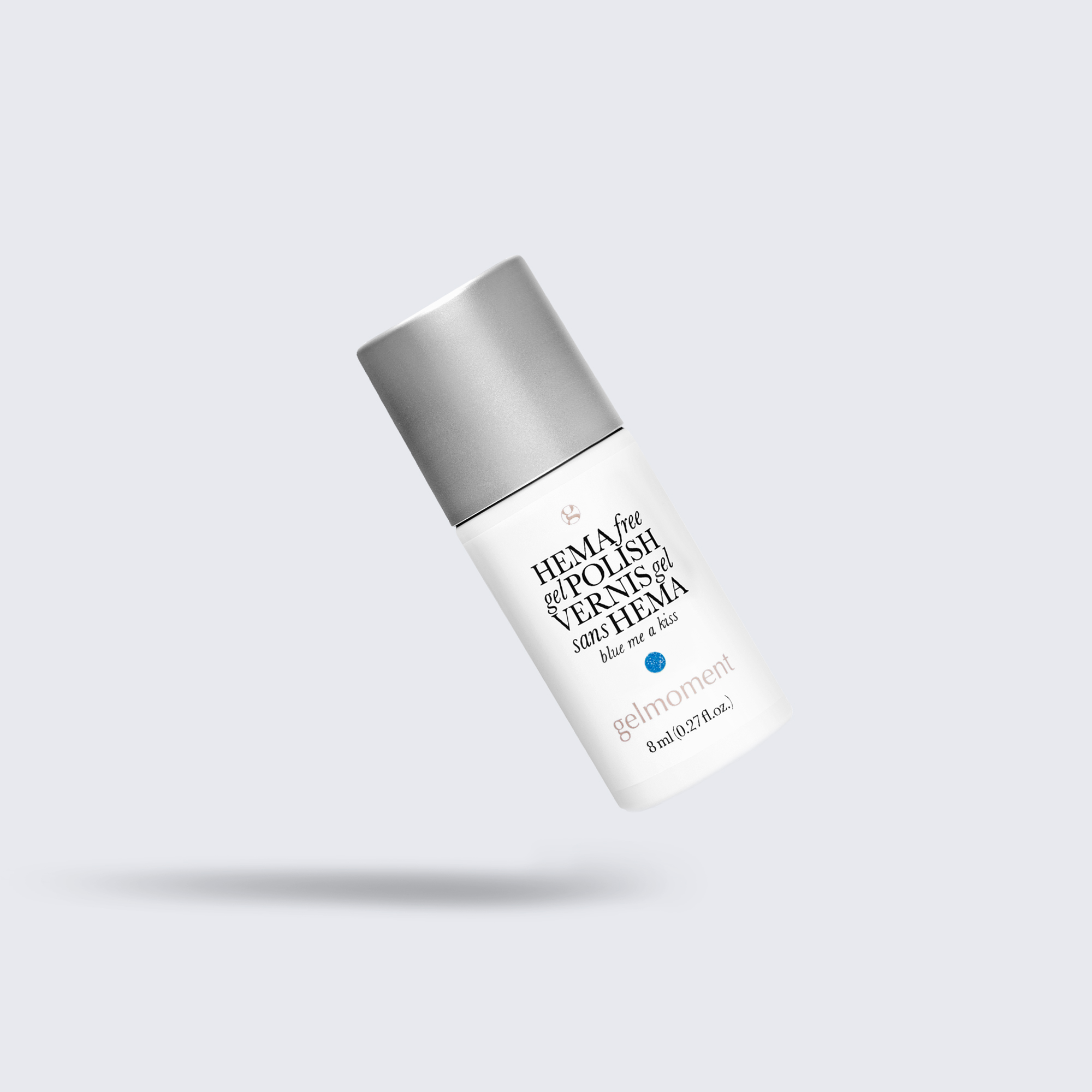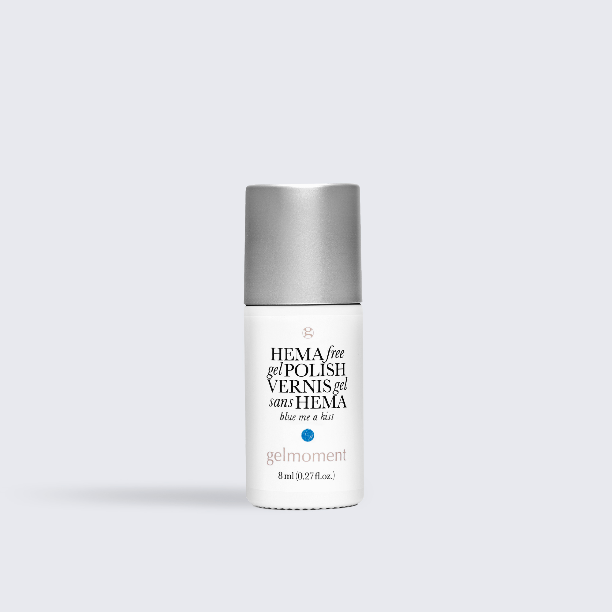 Medium blue. Metallic foil sparkle. Opaque. Cool undertone.